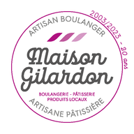 La Maison Gilardon est une petite boulangerie de village traditionnelle mais partisane du « tout fait maison ». Nous choisissons des matières premières de qualité et les plus locales possible . Nous cultivons notre levain naturel pour confectionner certains pains à base de farine paysanne. La pâtisserie est simple, goûteuse, et généreuse. Nous travaillons aussi avec les meilleures matières premières possibles (ex. Valrhona pour le chocolat).